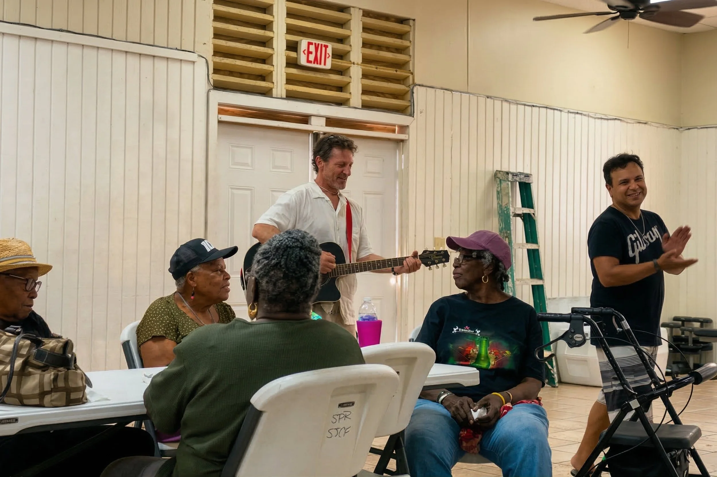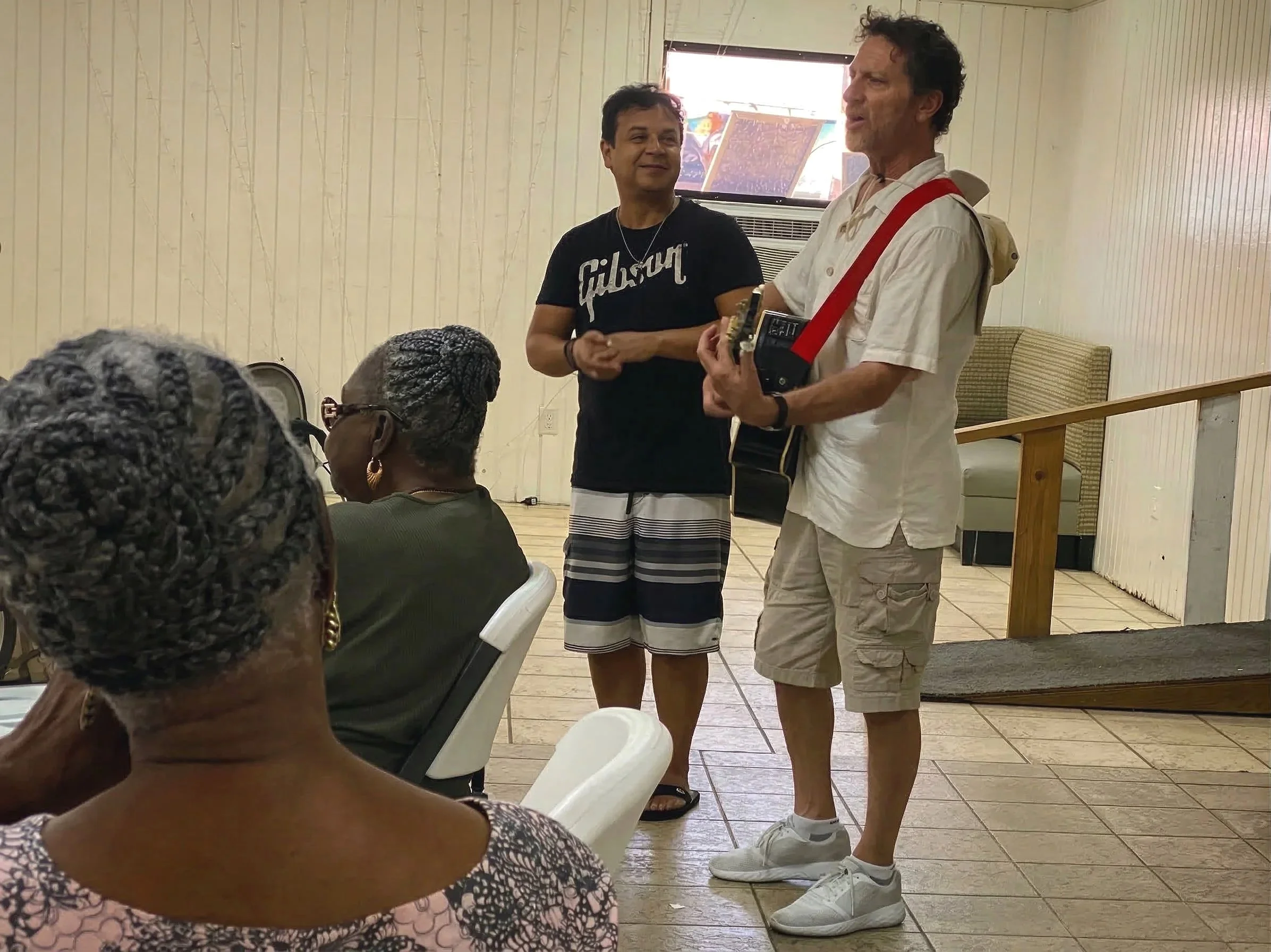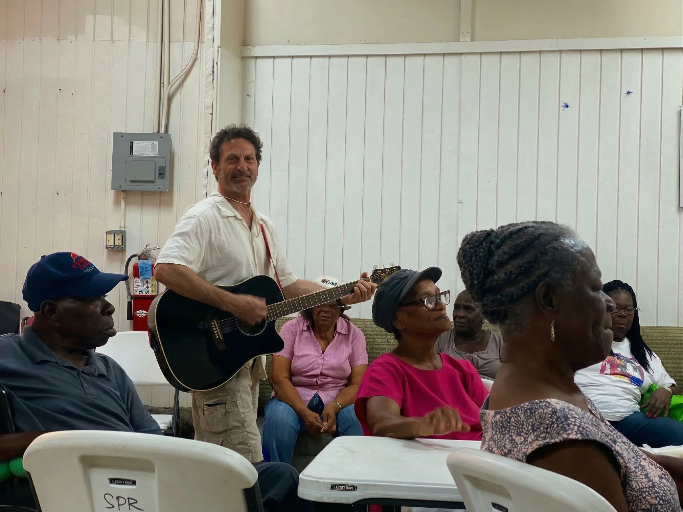 Dave, Debra, Rick and I started the day by taking the 12 o’clock ferry to St. John to play for the seniors of Cruz Bay. The senior center is still rebuilding from the last pair of hurricanes, so we met at the Housing, Park and Recreation Center. We met so many beautiful people. We played songs, told stories, and shared a lot of sunshine.
