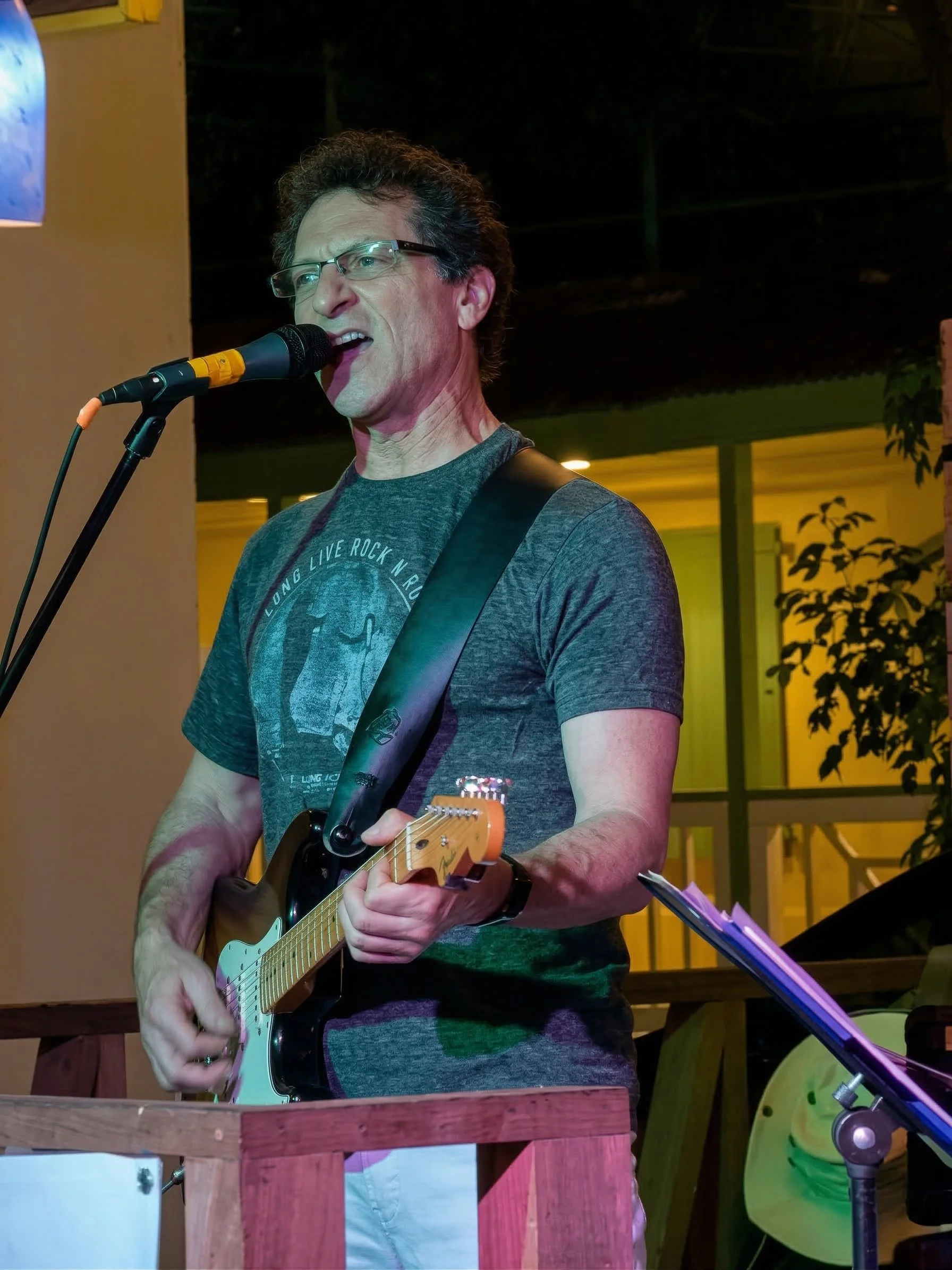 We all slept in after a long day and an even longer night. We took the 5 o’clock ferry to St. John. After we set up Dave and Rick did another wonderful unplugged set of classic rock songs. Most of the songs were by request. Everyone was very happy.
