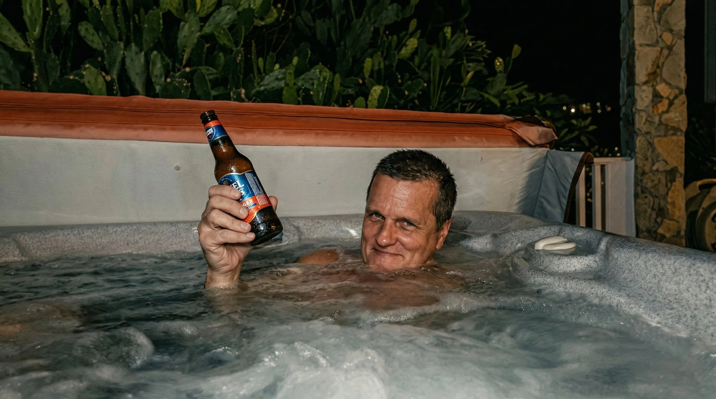 Most of us went to bed early after a very long day. Billy and Chris relaxed in the hot tub before calling it a day.