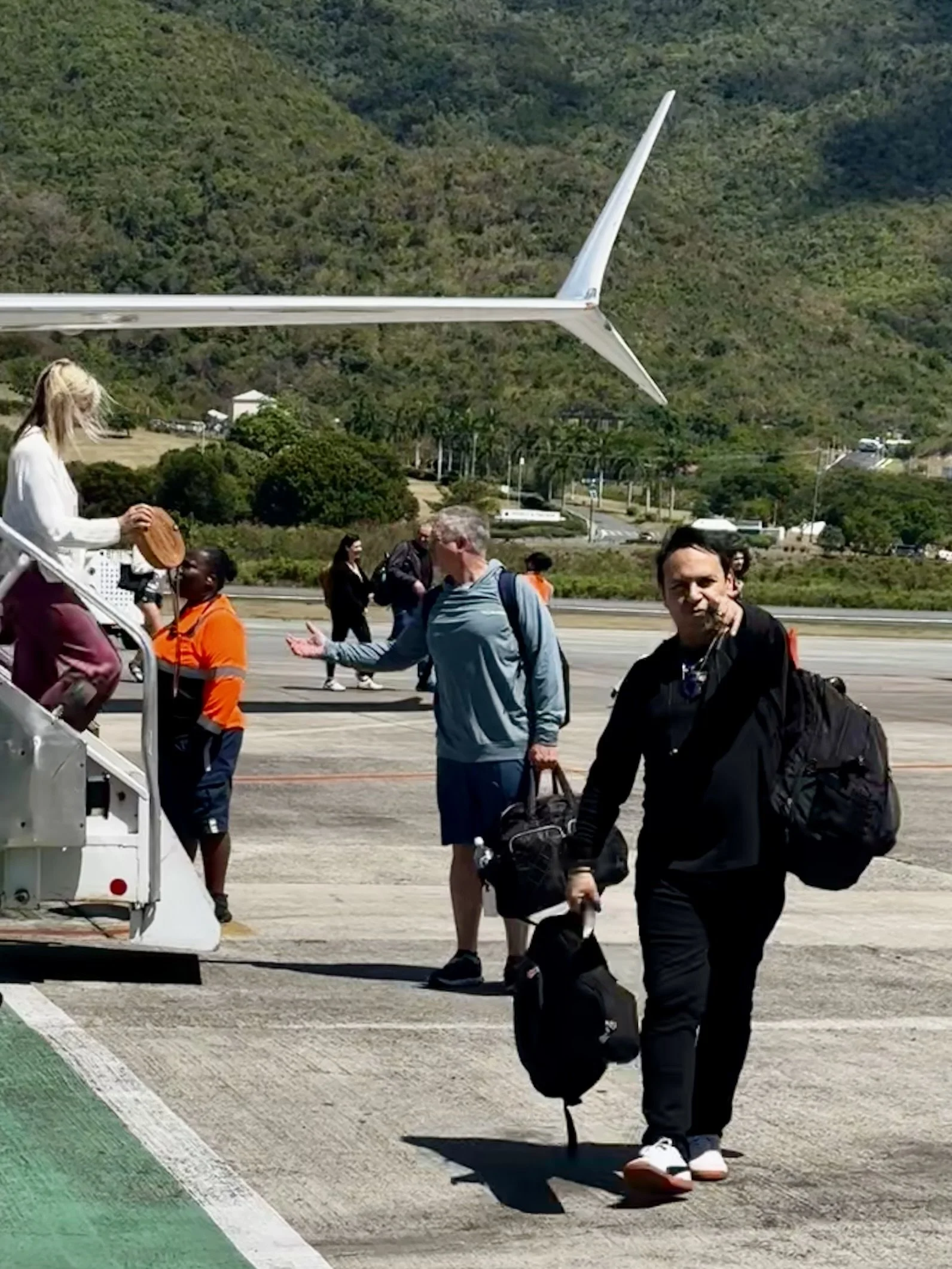 We touched down in St. Thomas at 11:08 AM. As any St. Thomas traveler knows, the complimentary Cruzan Rum samples are just a few steps from your airplane. Today’s catch of the day was coconut flavored! Debra said it was very tasty.