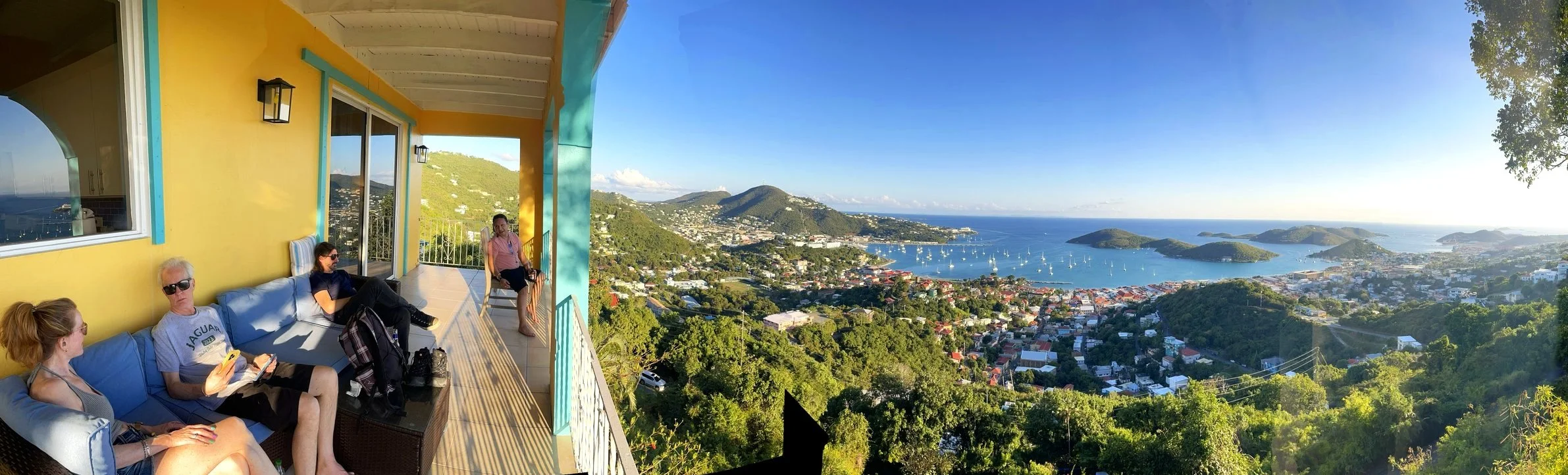 Chris, Rick, and I drove to the Mafolie Hotel to check in while Debra and body guard, Jason, waited on the fitting of her custom jewelry. We reserved hotel rooms since our VBRO rental was not available for the first night of our trip. Chris and I remembered the Mafolie Hotel from our original visit in 1989. It has a spectacular view overlooking Charlotte Amalie. I thought it would be a wonderful place to celebrate the first day of our Caribbean tour. I was right.