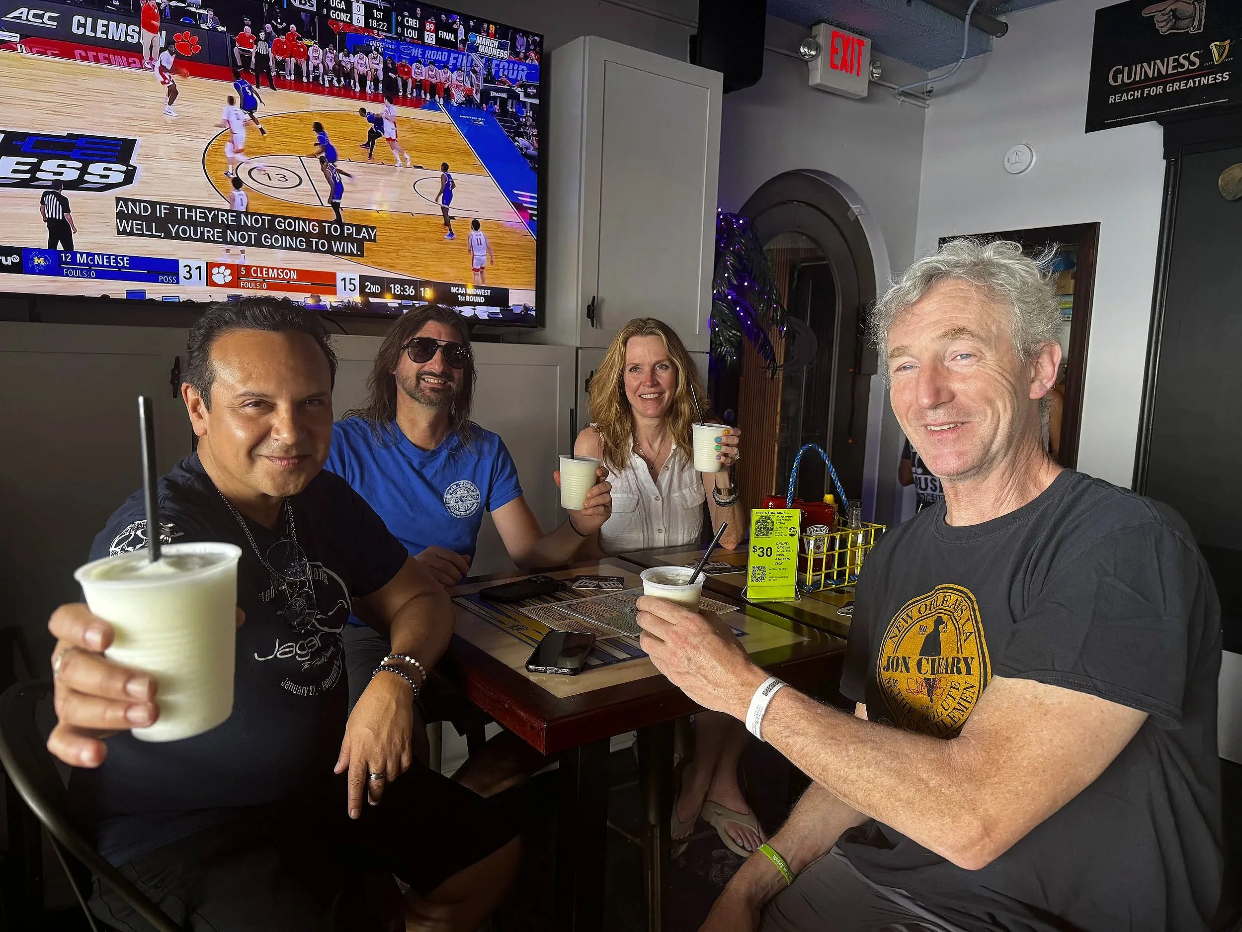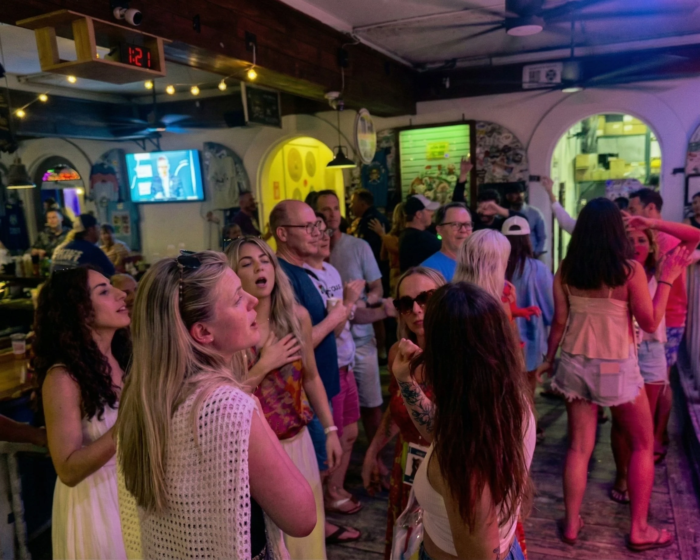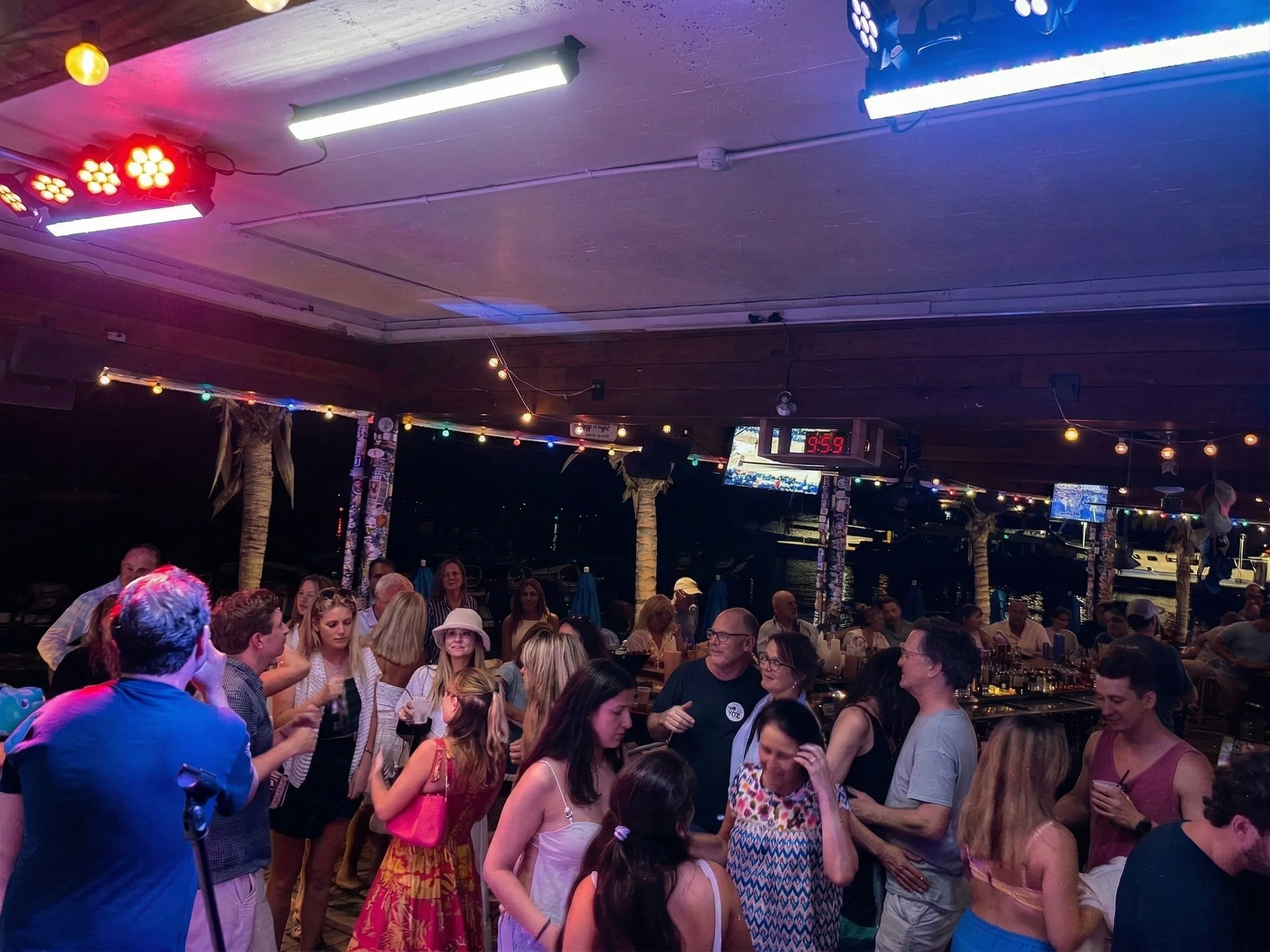 We made the 4 minute drive back to the house ate lunch and got everything ready to make the 4 PM ferry back to St. John. This would be our 3rd and final show at the World Famous Beach Bar. We had a quick dinner (the food at the beach bar is so good) and a round of “the lime and the coconut” before we set up. Debra headed over to Morgan’s Mango to grab a slice of the best Key Lime Pie we have ever tasted. Yes she brought it back to let us taste it. It is unbelievably good.
